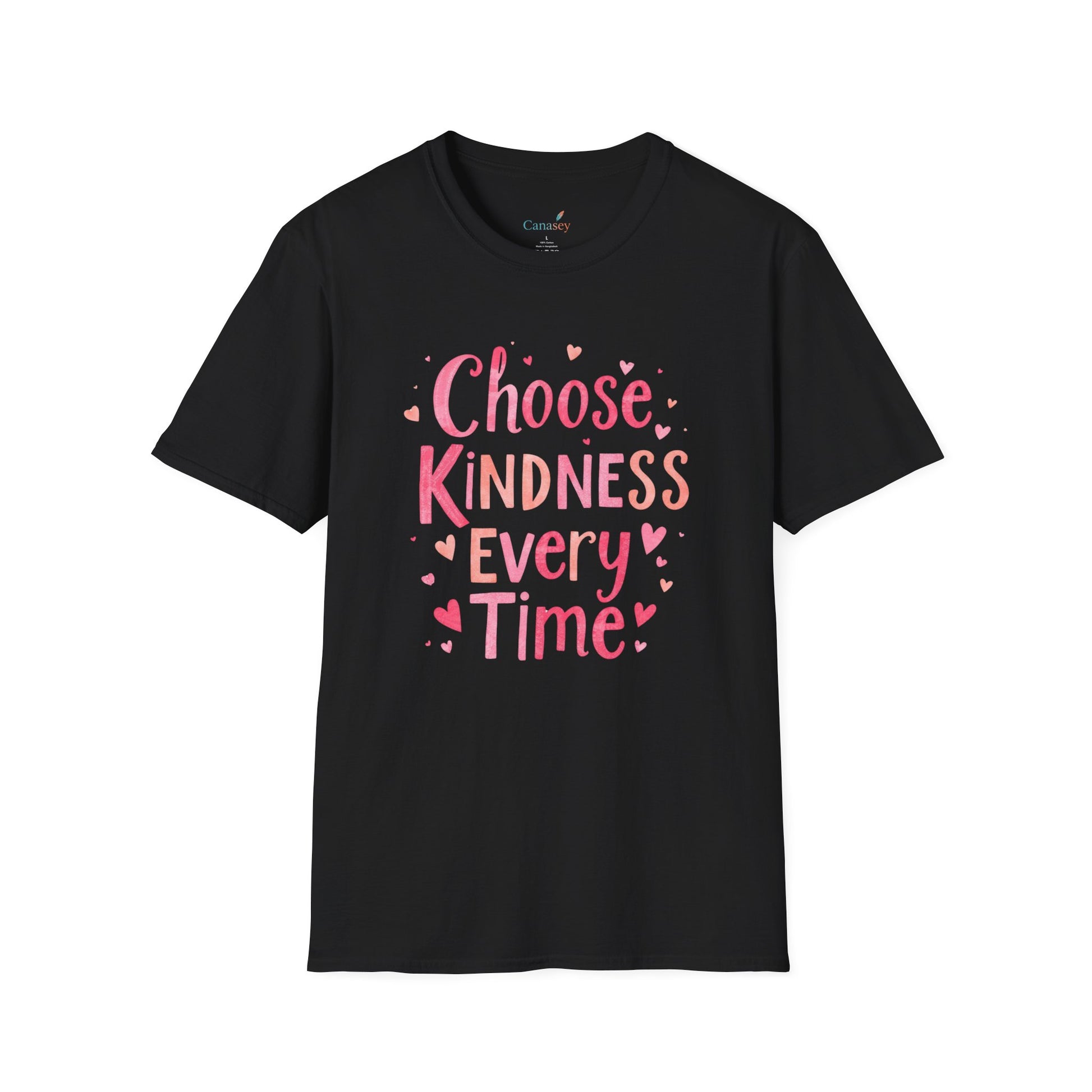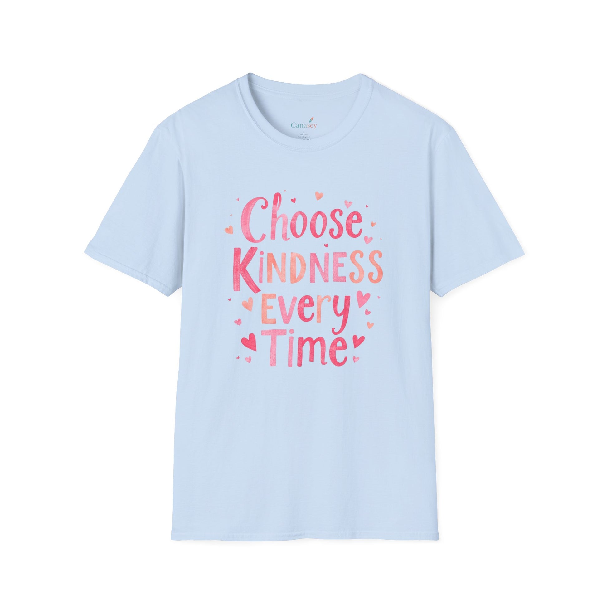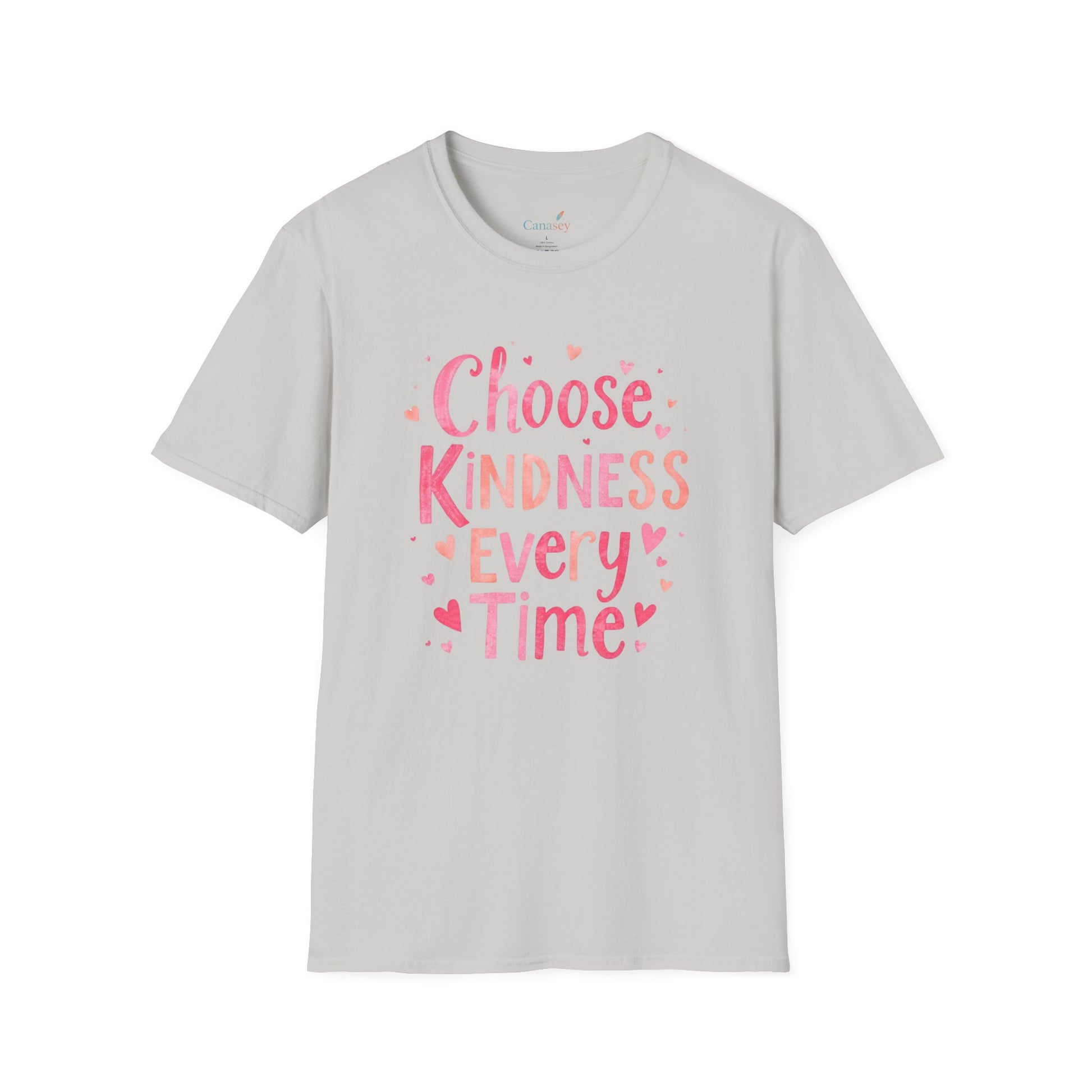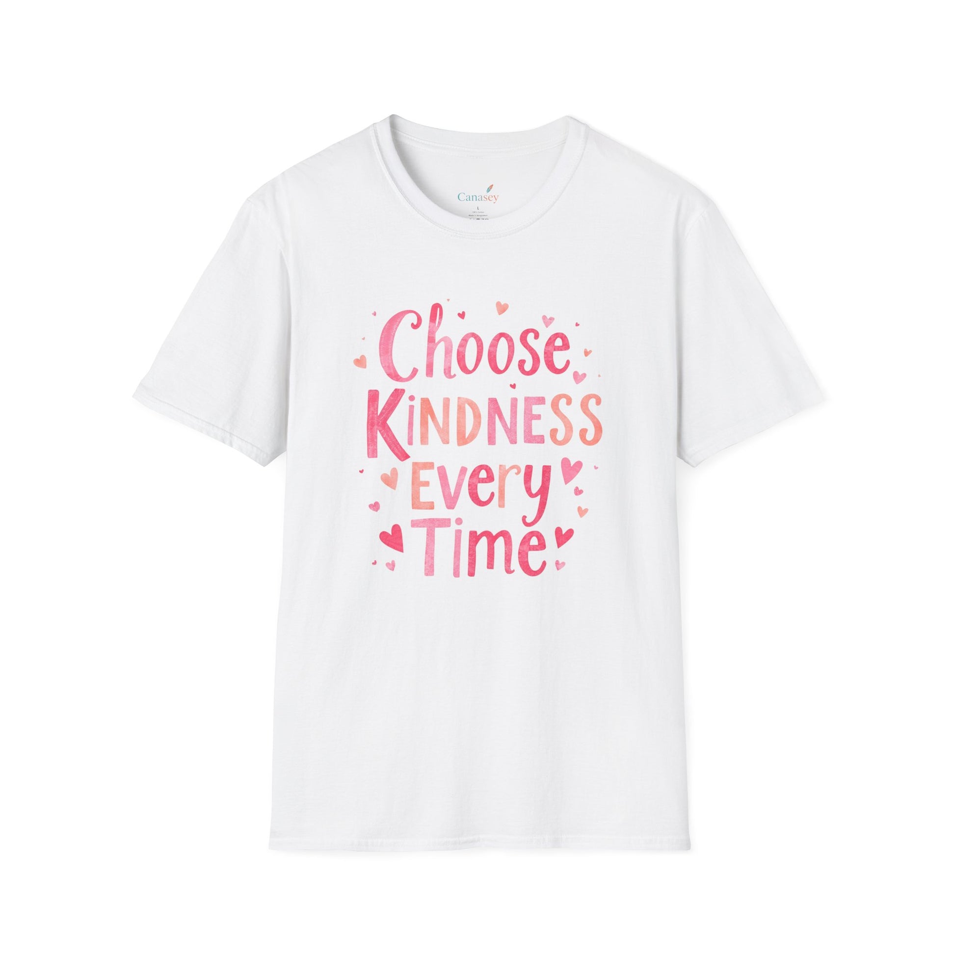 A unisex softstyle T-shirt that promotes kindness with the message 'choose kindness everytime'. This shirt exudes positivity and can be a daily reminder to spread kindness in the world. Perfect for adults looking for a comfortable and durable shirt to wear year-round. Ideal for casual wear and can be worn on various occasions.