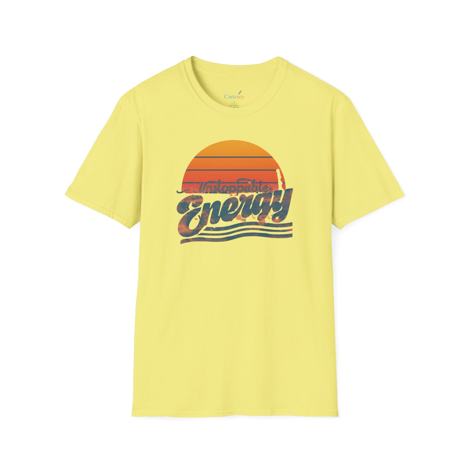 This T-Shirt radiates unstoppable energy, perfect for adding a vibrant touch to any outfit. Ideal for adults looking for a comfortable and durable top for everyday wear or special occasions, this T-Shirt is made from high-quality fabric for a smooth feel. Product features - Made from 100% ring-spun cotton for a lightweight and comfortable fit - Ribbed knit collar with shoulder tape for added elasticity and shape retention - Tubular knit design without side seams for reduced fabric waste - Certified by Oeko-Tex for safety and quality assurance - Ideal for DTF sleeve prints or classic crewneck style Care instructions - Do not dryclean - Do not bleach - Tumble dry: low heat - Iron, steam or dry: low heat - Machine wash: cold (max 30C or 90F), with similar colors